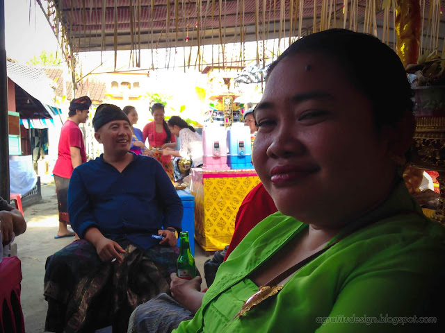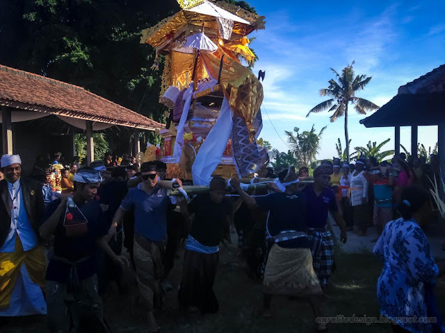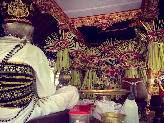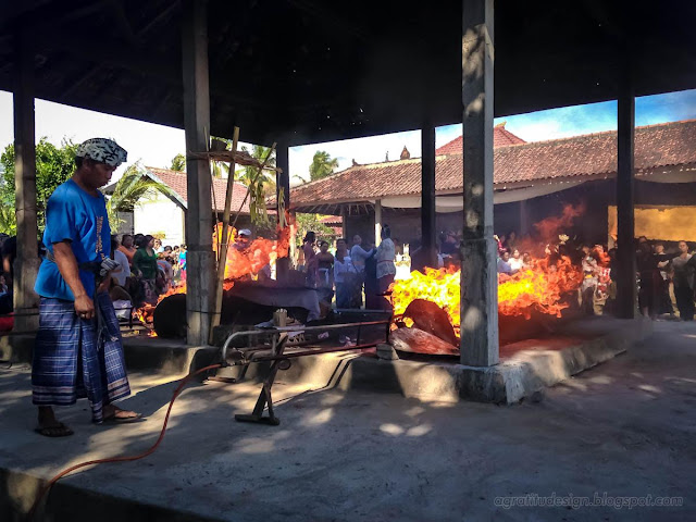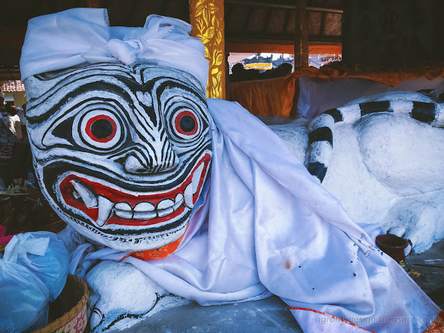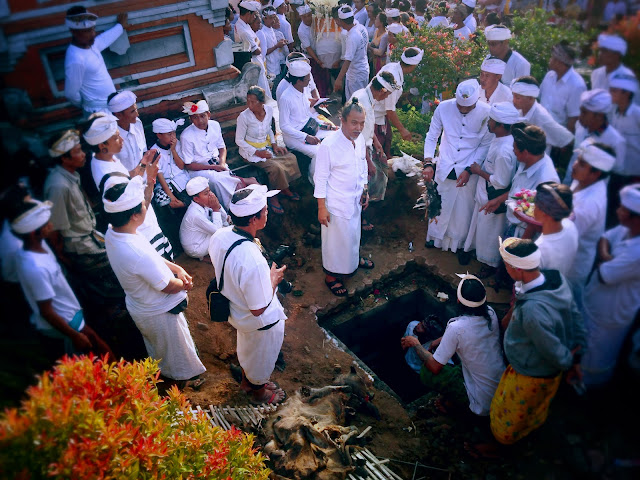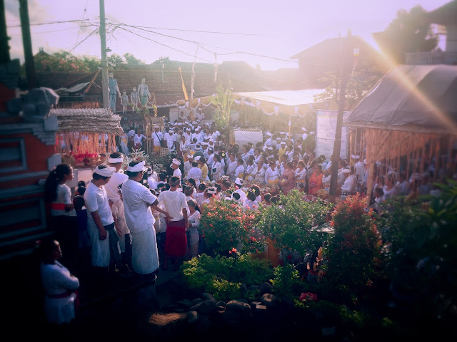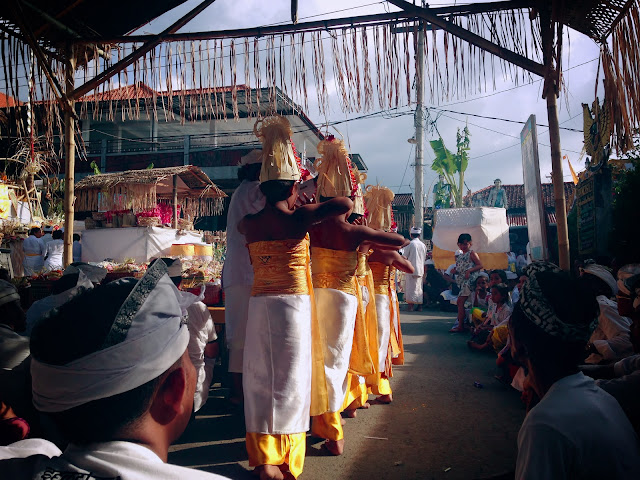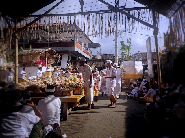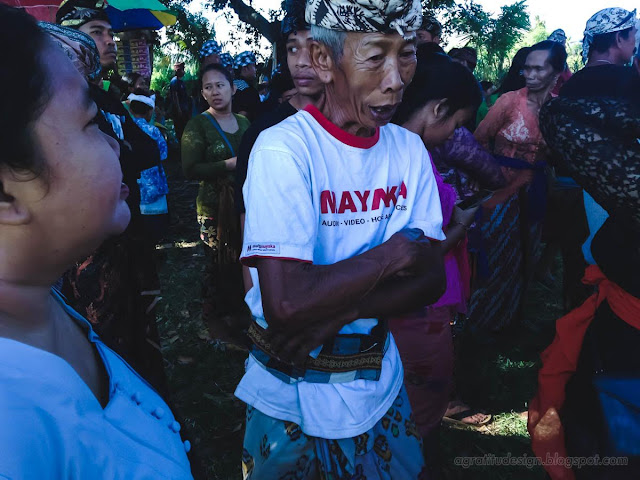 Pecalang Balinese Local Security Officer walking around under the sunlight before the cremation ceremony begins