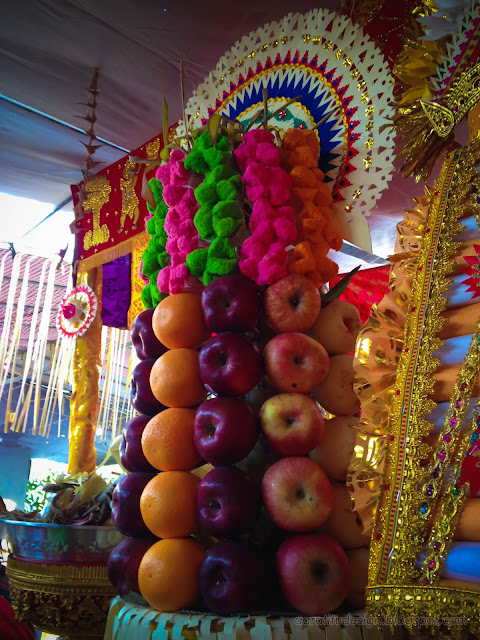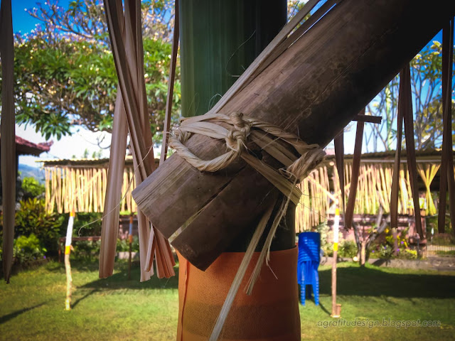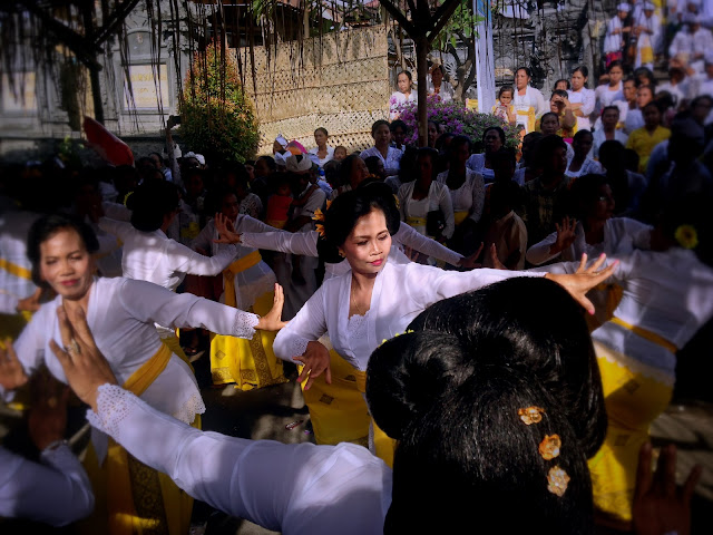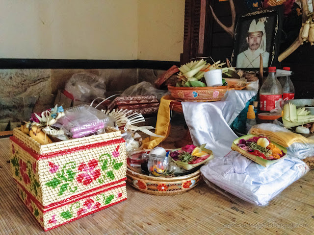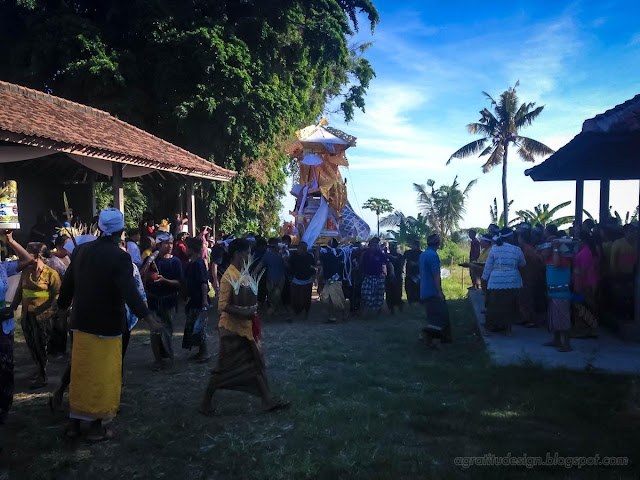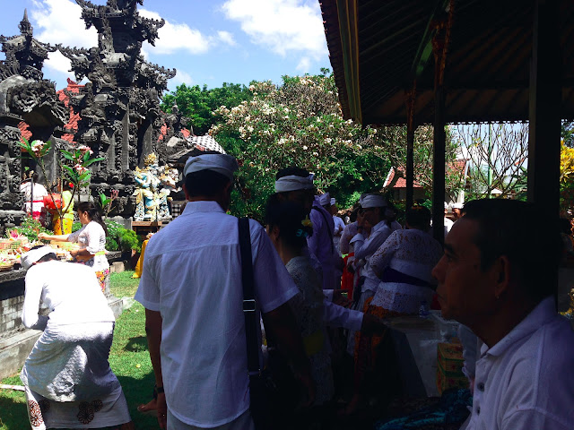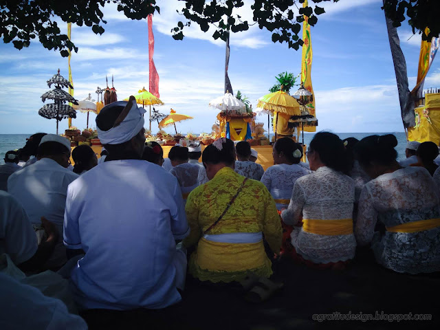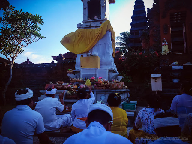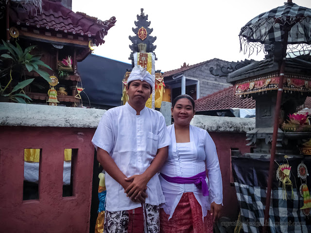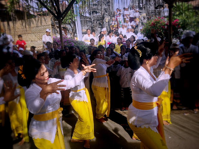 Pecalang Balinese Local Security Officer walking around under the sunlight before the cremation ceremony begins