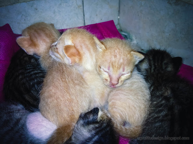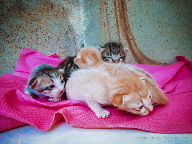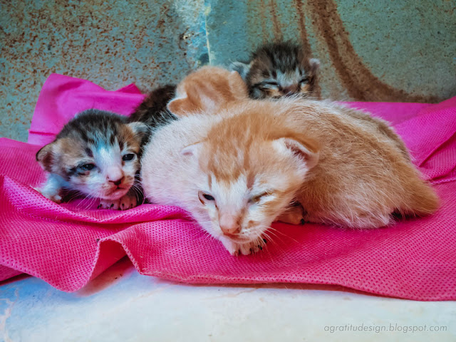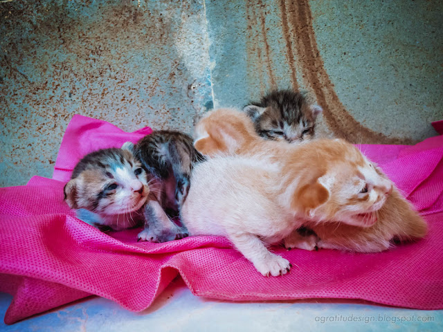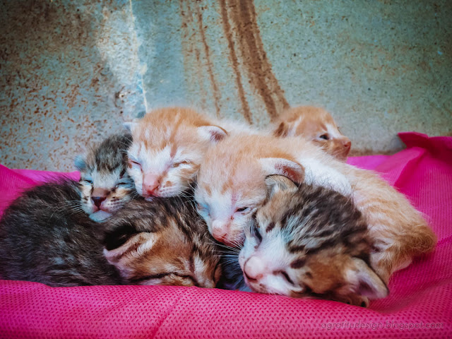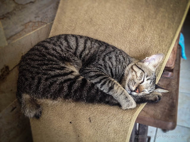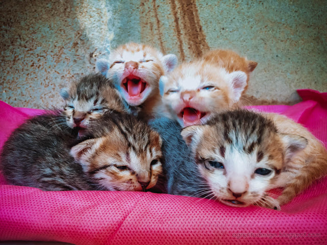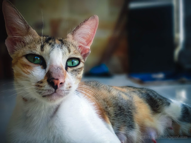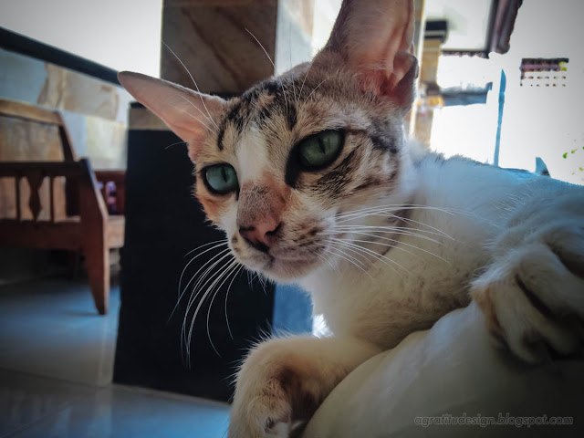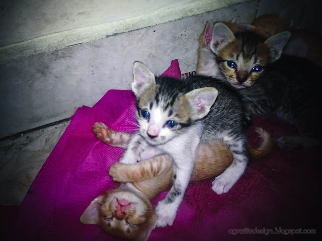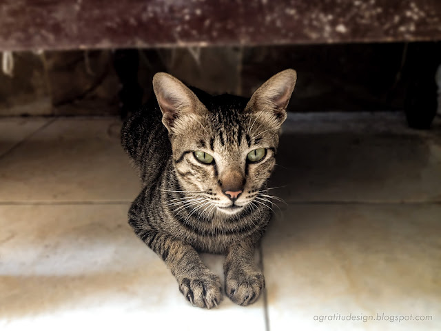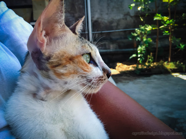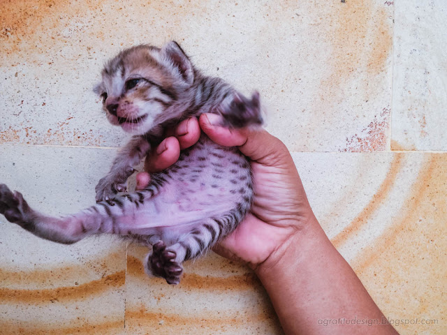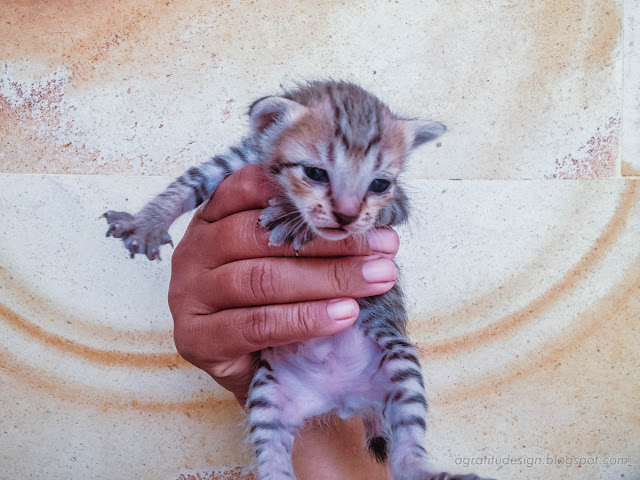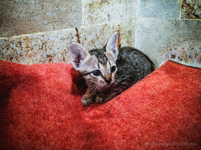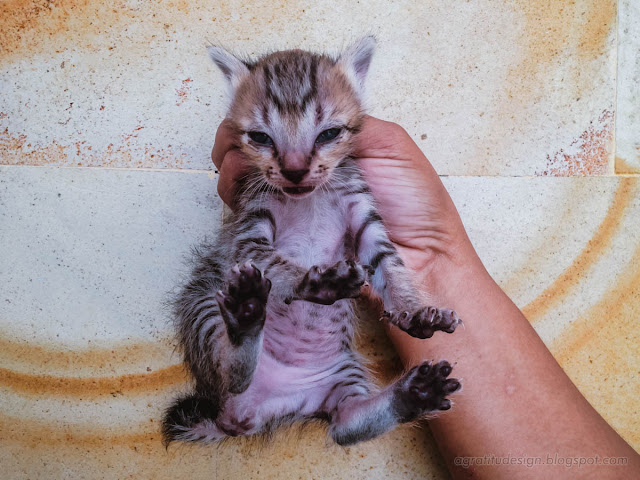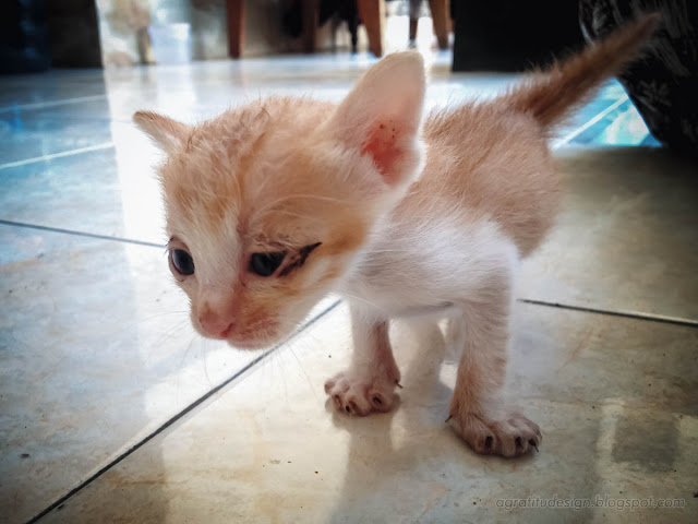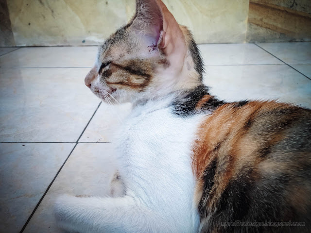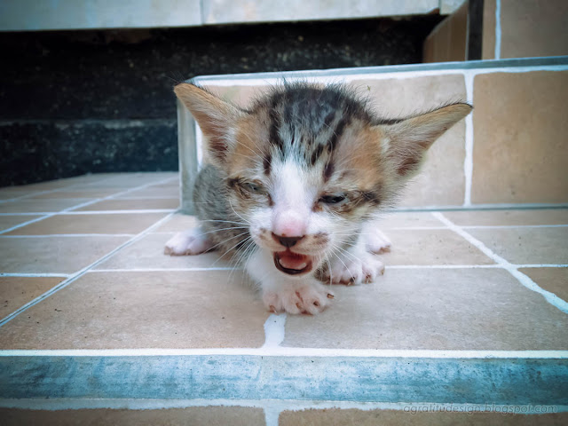 White Black Brown Strips Very Young Kitten Walk And Cry On Porch Stairs Of The House North Bali Indonesia
