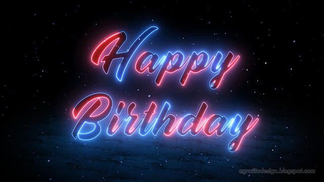 Red Happy Birthday Lettering Neon Light With Abstract Shiny Flare Glitter Bokeh Lights And Sparkles Background Design