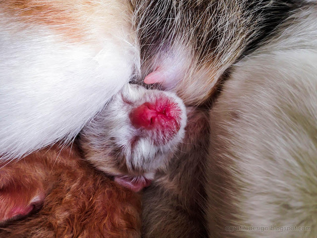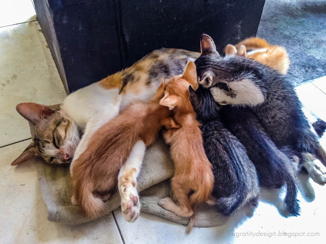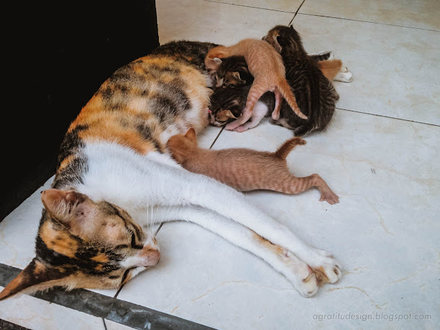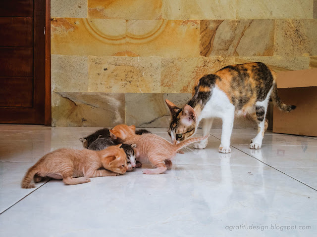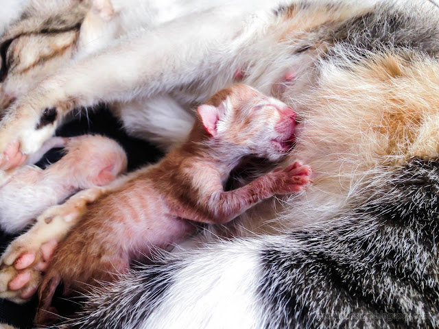 Young Kittens Struggle To Feed Their Mother On The Floor In The House