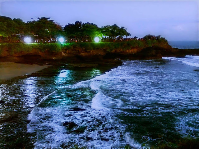 Enjung Galuh Temple and Coastal Waves at Tanah lot Temple Region Tabanan Bali Indonesia