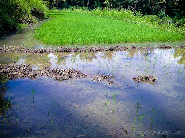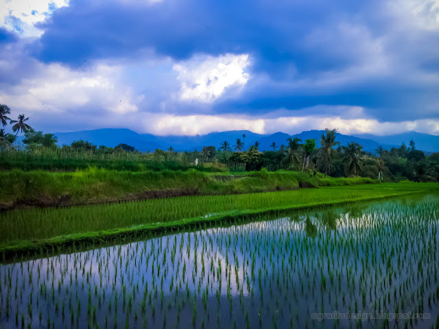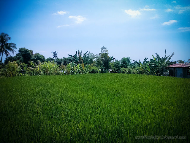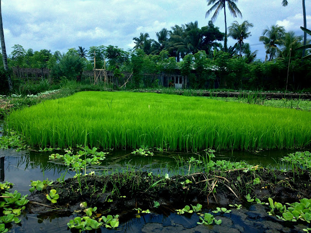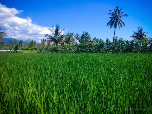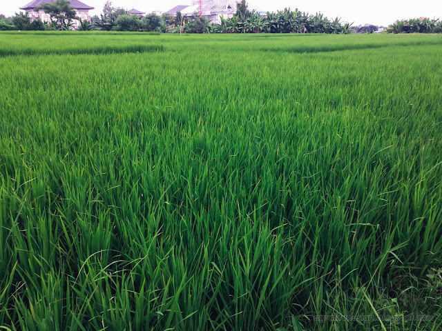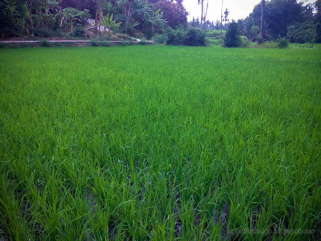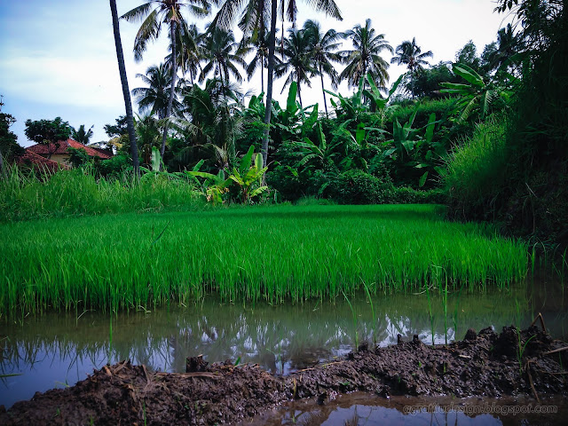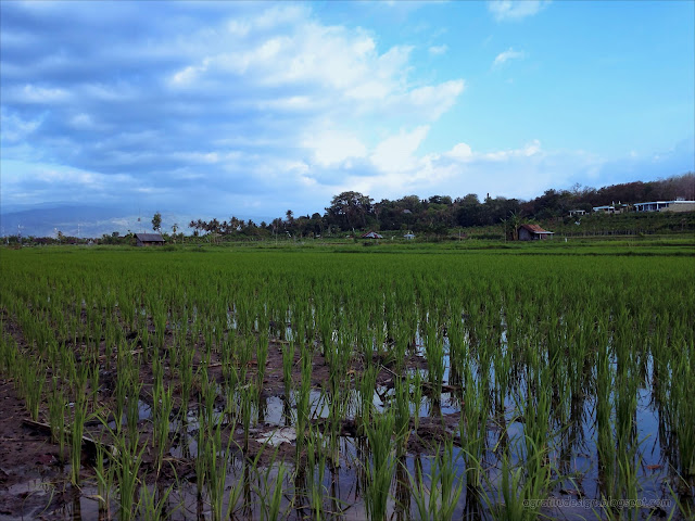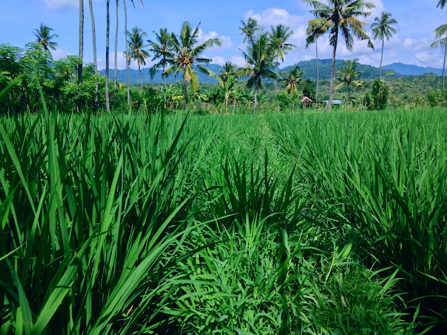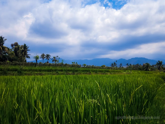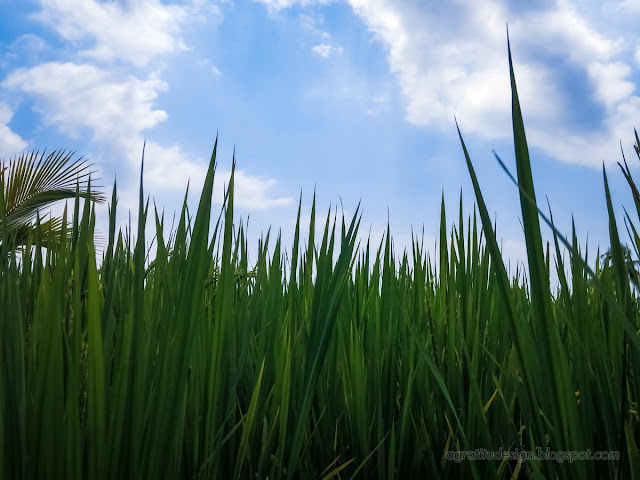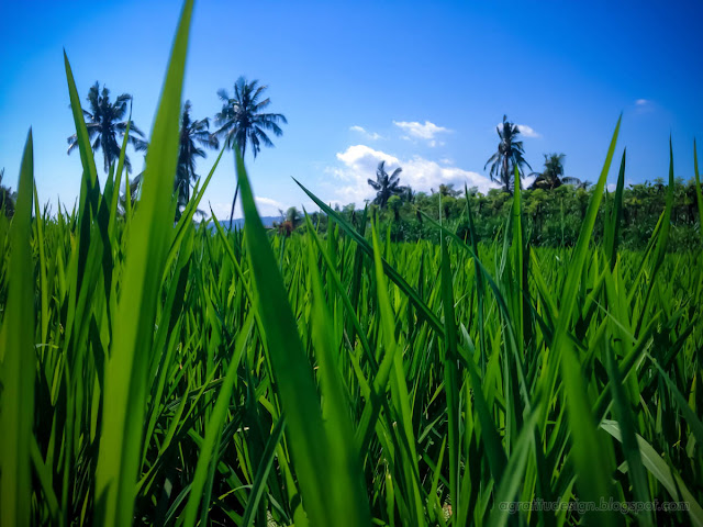 Beautiful Green Leaves Of Agricultural Paddy Plants In The Sunny Cloudy Day At Ringdikit Village North Bali Indonesia