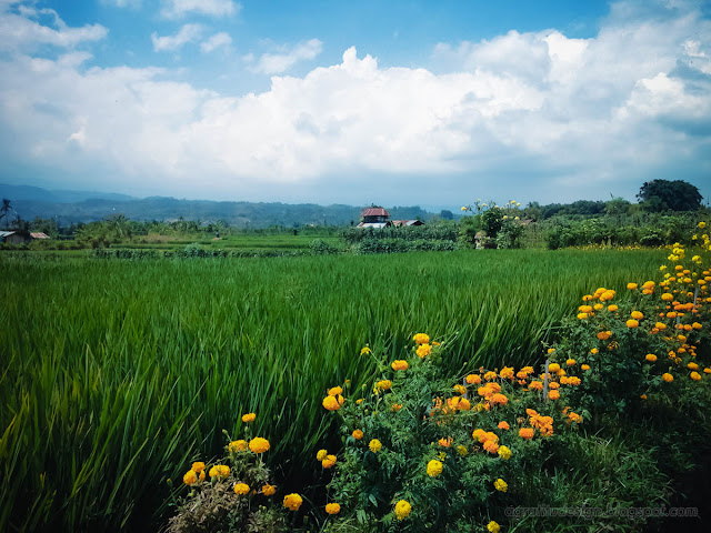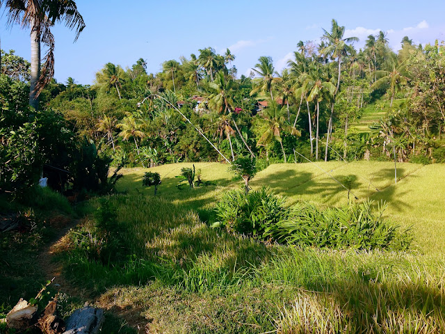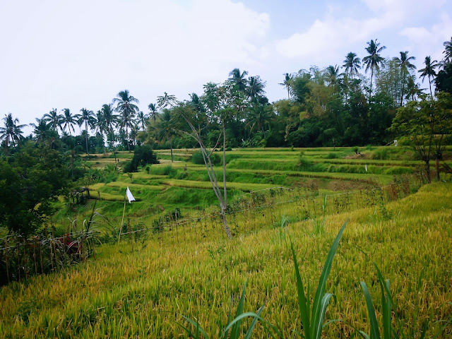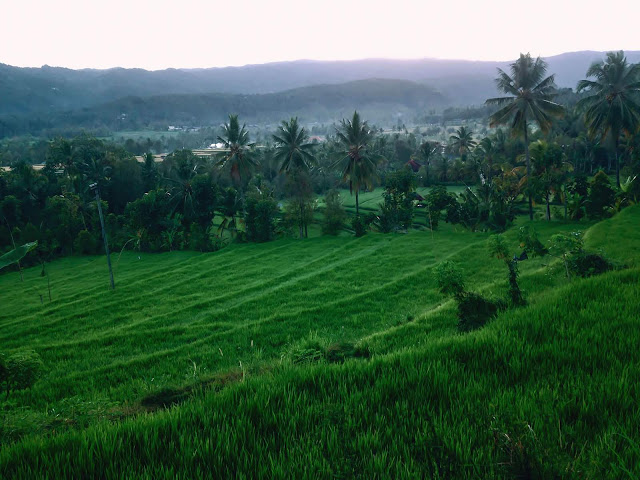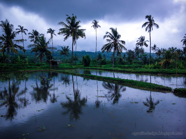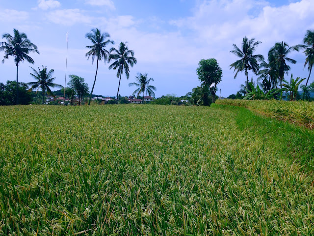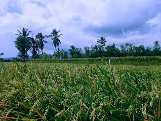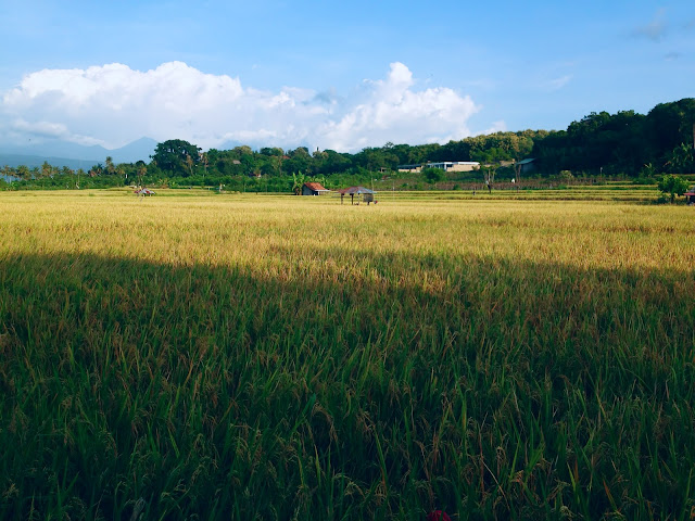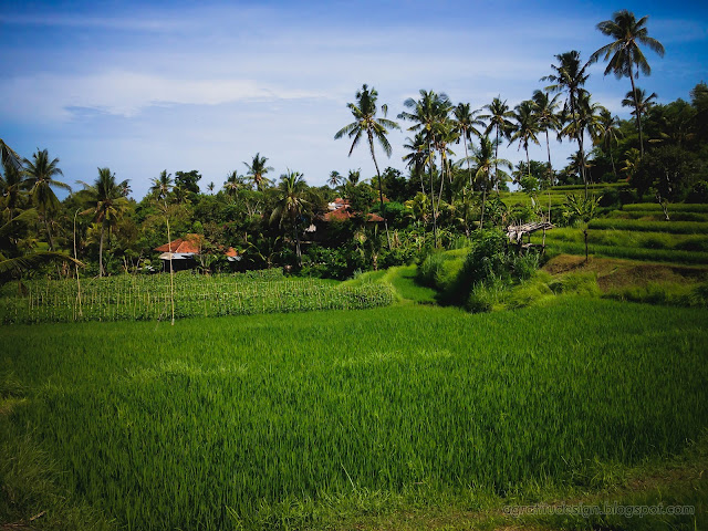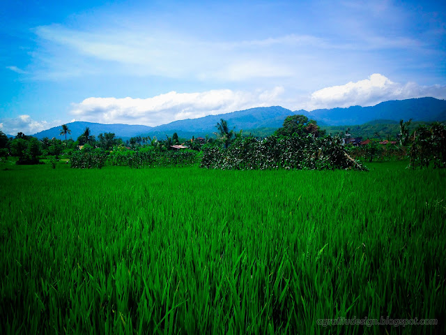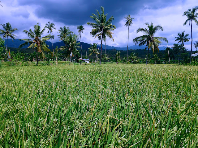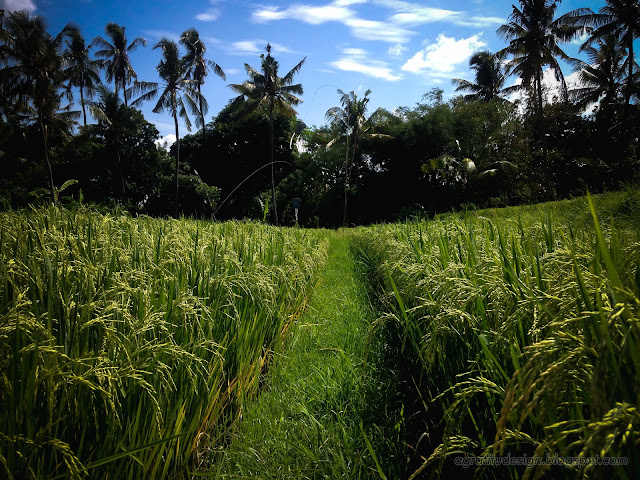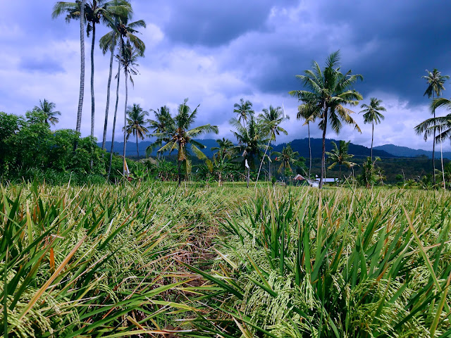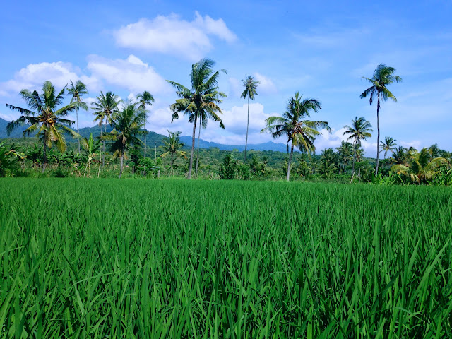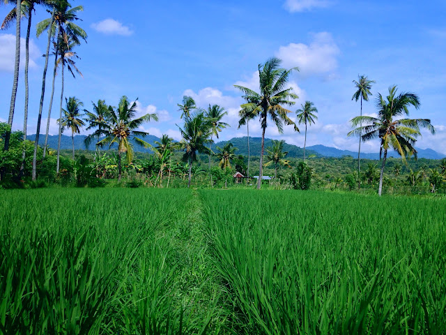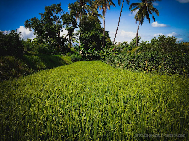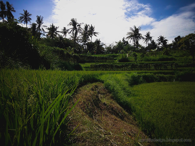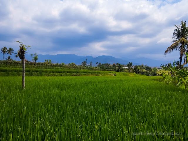 Natural And Peaceful Coutryside Farmland Of The Rice Fields On A Sunny Cloudy Day At Ringdikit Village North Bali Indonesia
