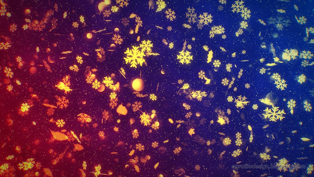 Golden Christmas Confetti Of Snowflakes Leaves And Circles Glitter Grunge Dust Flying In The Air Against Red And Blue Gradient Background