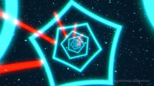 Perspective View Blue Colorful Light Streaks With Sparks In The Blue Dark Space
