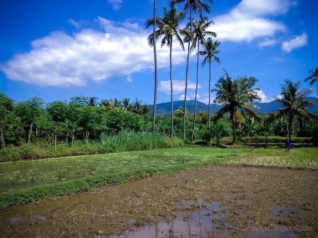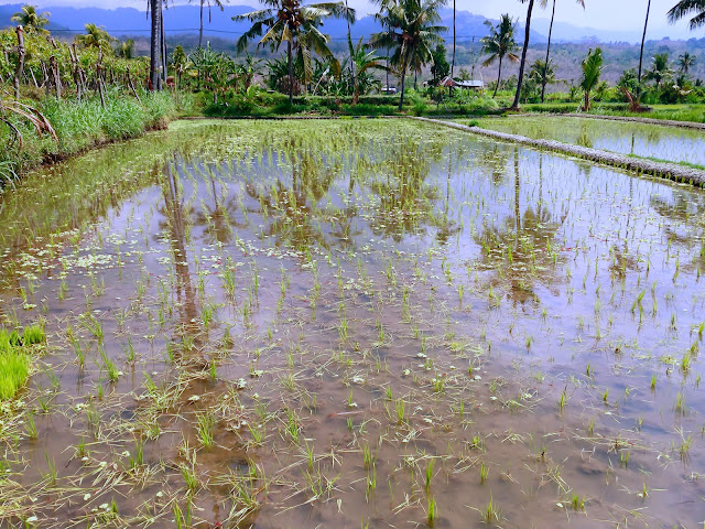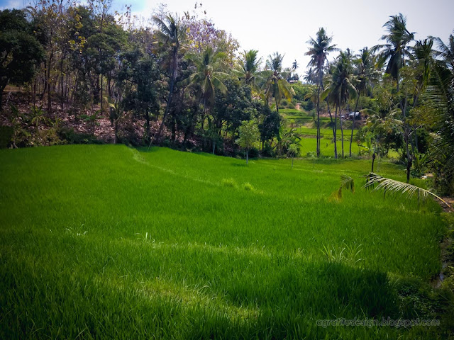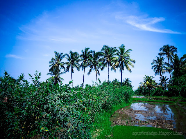 Farm Land Scenery with Coconut Tree and Rice Seedling
