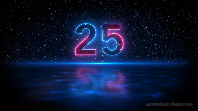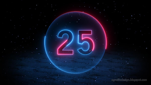 Number 25 Neon Light Style With Circle on Dark Blue Rough Floor Tiles In the Snowfall