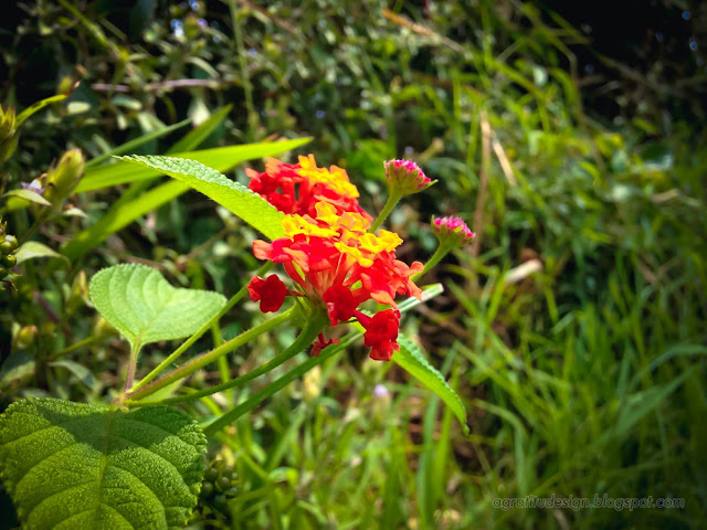 Fresh Wild Lantana Plant Flowers Blooming Among The Bushes In Agricultural Area North Bali Indonesia