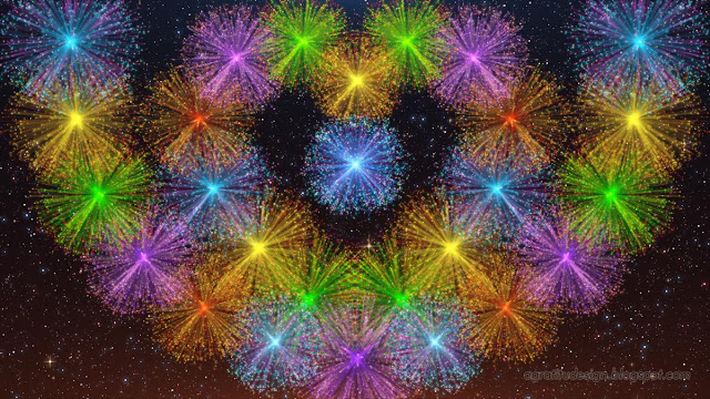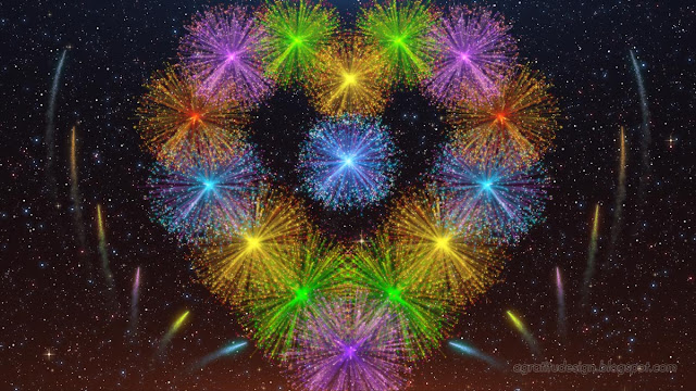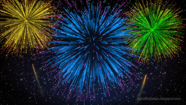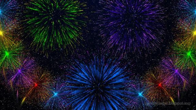 Attractive Colorful Fireworks Explosion On Dark Starry Night Sky