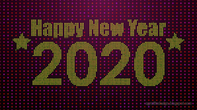 Happy New Year 2020 Greeting Text Dotted With Abstract Red Colorful Dot Grid Pattern Background