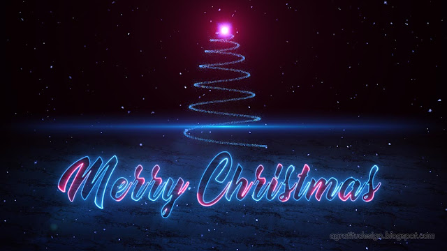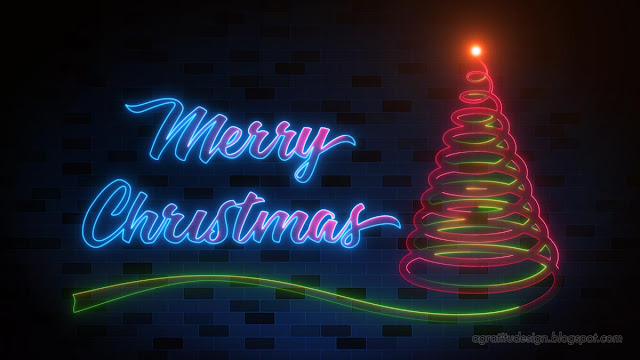 Beautiful Merry Christmas And Spiral Christmas Tree Neon Light With Dark Blue Brick Wall Background