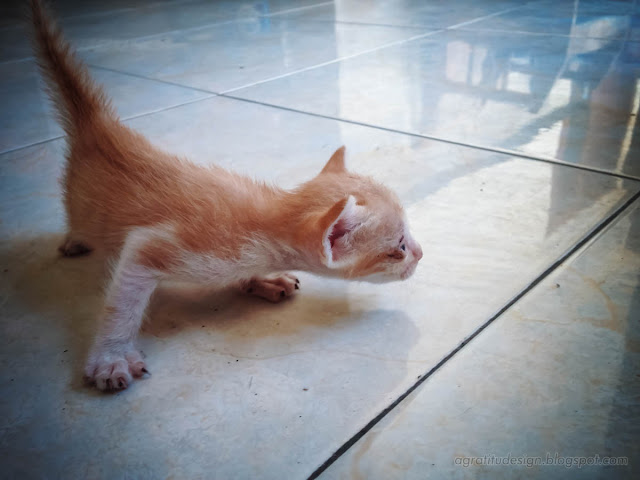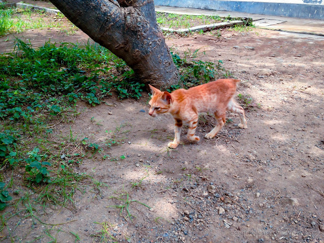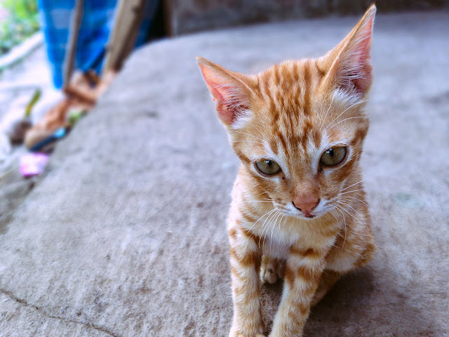 Adorable Brown Very Young Kitten Walking On Porch Stairs Of The House North Bali Indonesia