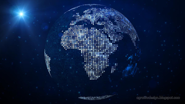 Square Shines Dotted Globe Earth World Map Of Africa And Europe Against Blue Shiny Sparkles Stars And Lens Flare Glare Light