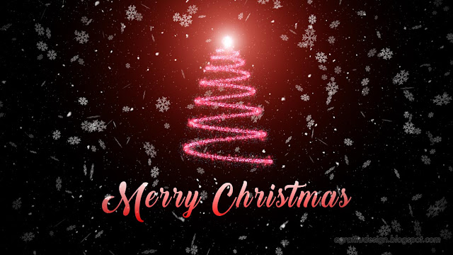 Red Shining Merry Christmas Text With Abstract Christmas Tree Sparkle Glitter Light Path Against Falling Snowflakes In Wind With Dark Background