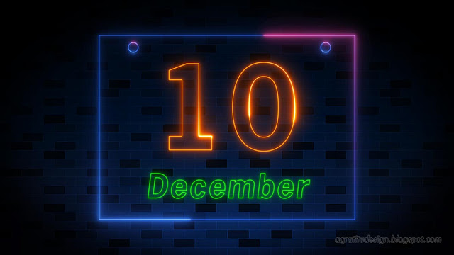 December 10th Colorful Neon Light Date Of Human Rights Day With Dark Blue Brick Wall Background