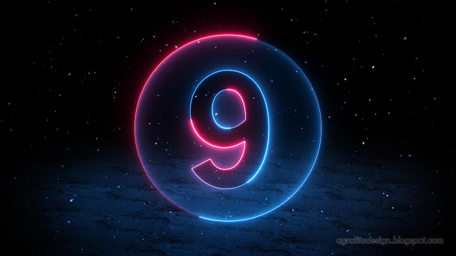 Number 9 Neon Light Style With Circle on Dark Blue Rough Floor Tiles In the Snowfall