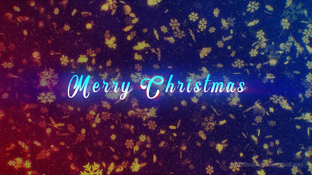 Festive Red And Blue Merry Christmas Greeting With Flying Snowflakes Leaves Circles Confetti And Glitter Grunge Dust In The Air Background