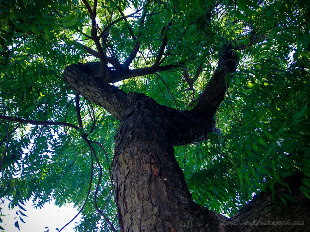 Green Leaves Of Shade Tree With Beautiful Tree Trunks On A Sunny Day