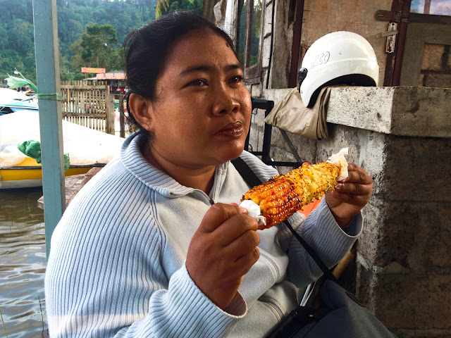 Eating Roasted Corn Bedugul Vacation Bali Indonesia