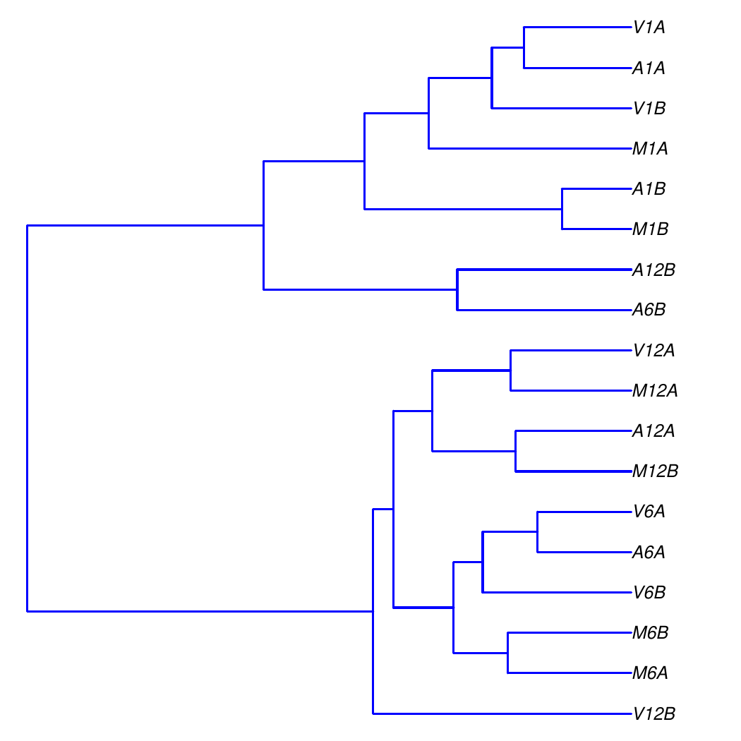 The following example performs hierarchical clustering on the `rlog`