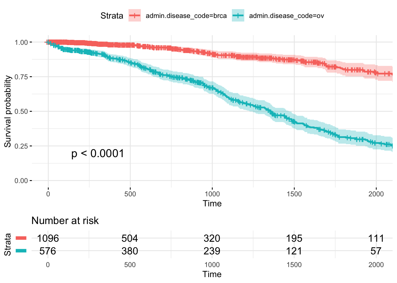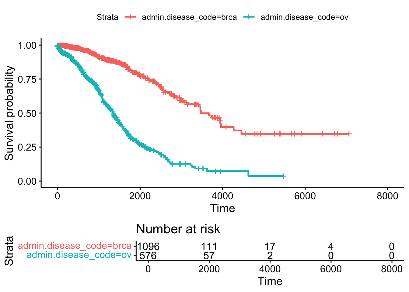 survivalTCGA(BRCA.clinical, OV.clinical,