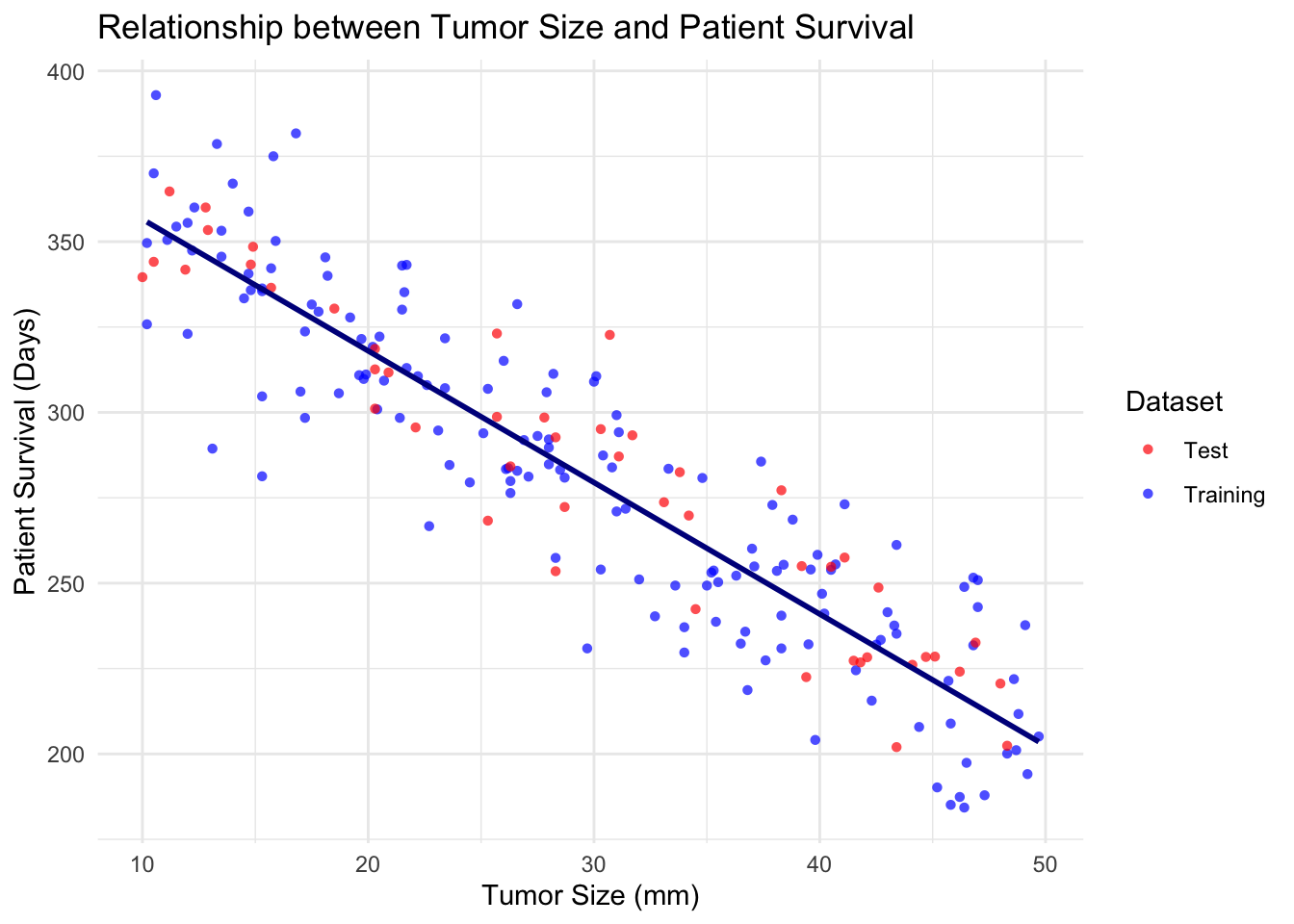 model <- lm(patient_survival ~ tumor_size, data = trainData)