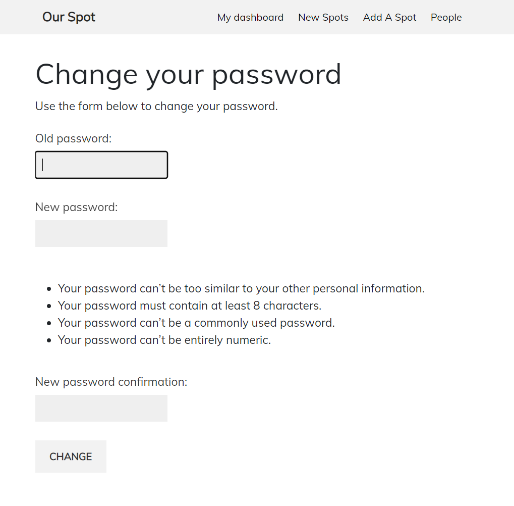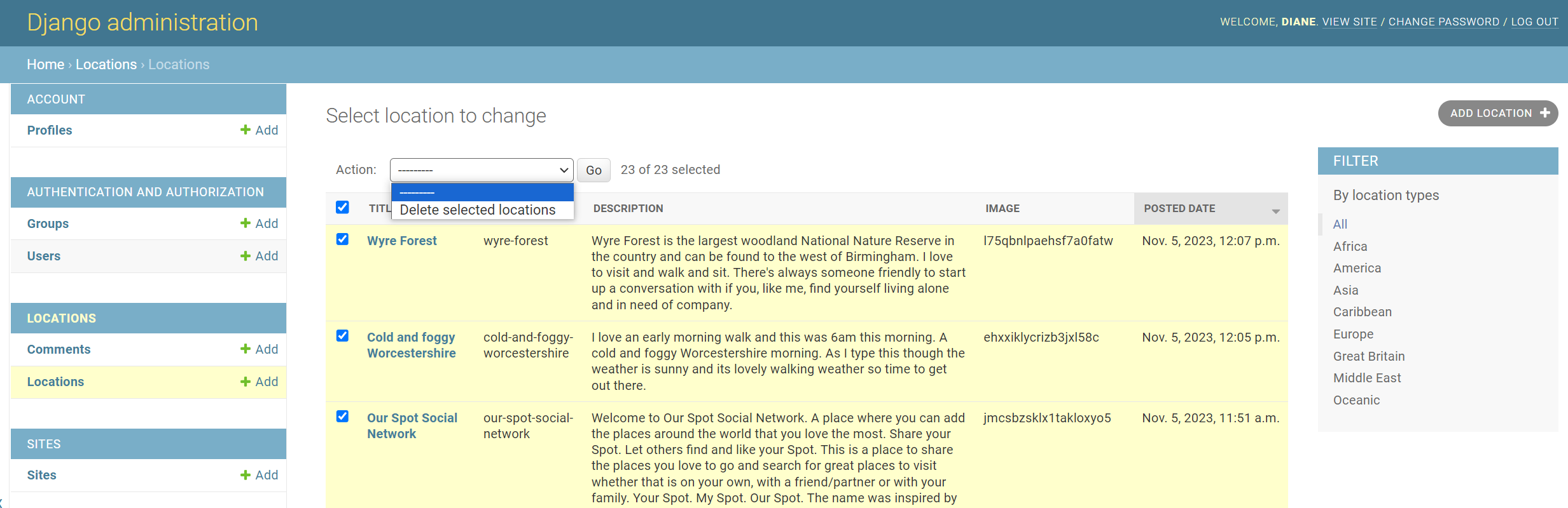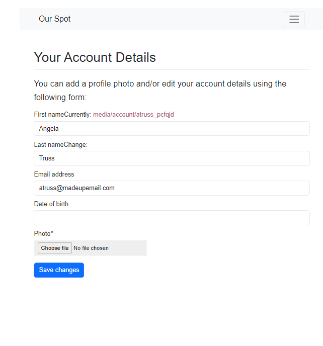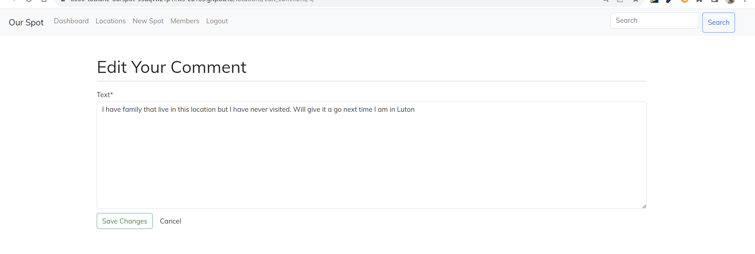 Our Spot is a web application made using Django. It's main aim is to provide a space where people can go to share their favourite places around the world. As well as sharing photos, the site will also provide an opportunity to connect with other members and foster friendships.