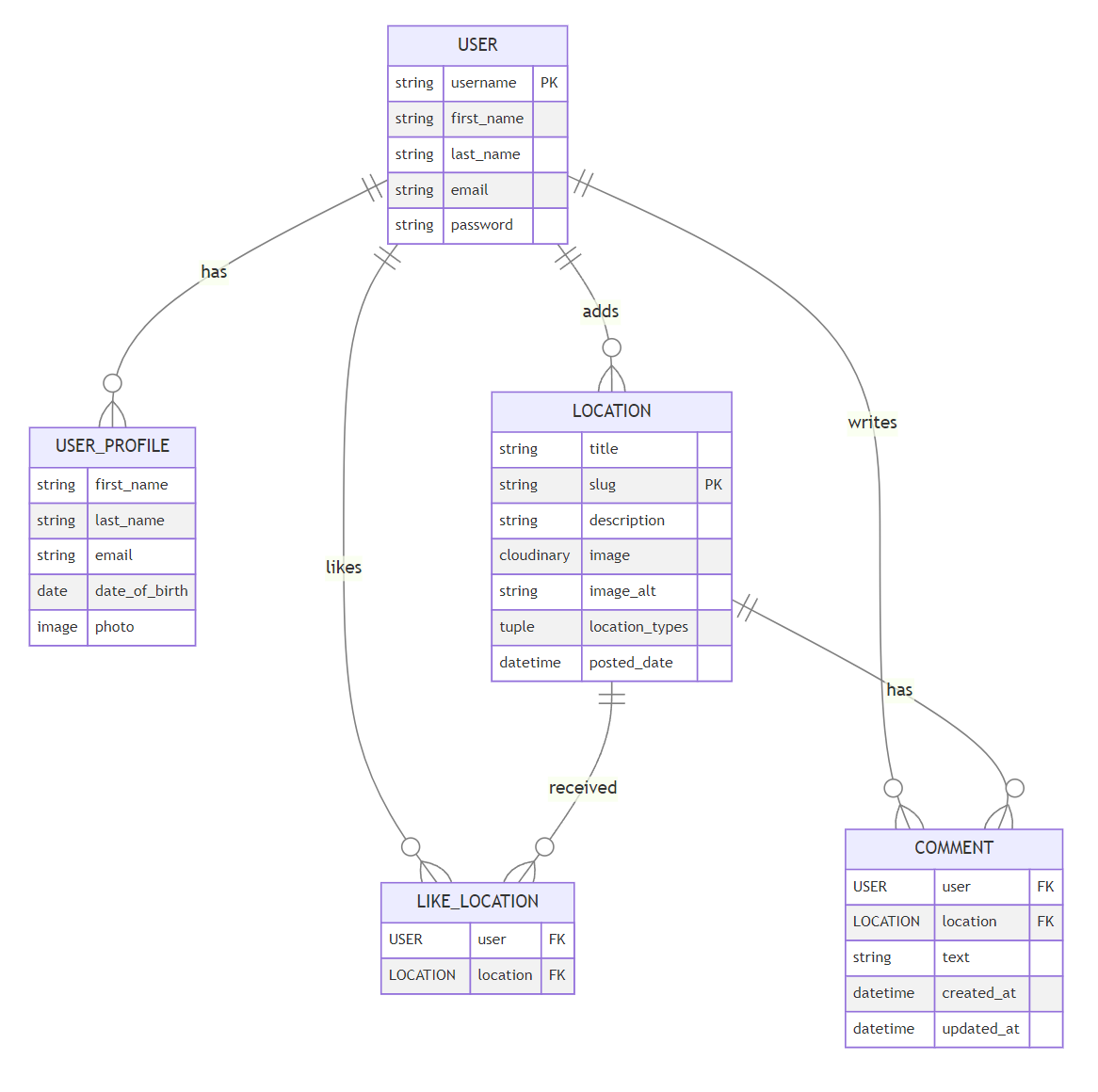 - There were a few challenges with the database which meant I had to reset it and start again. After the second data crash I moved over from Codeanywhere to GitPod after a recommendation from tutor support. The main cause of the crash happened when I changed my location app model and tried to migrate the changes. Spending more time planning my models will avoid the need to make changes in the future.