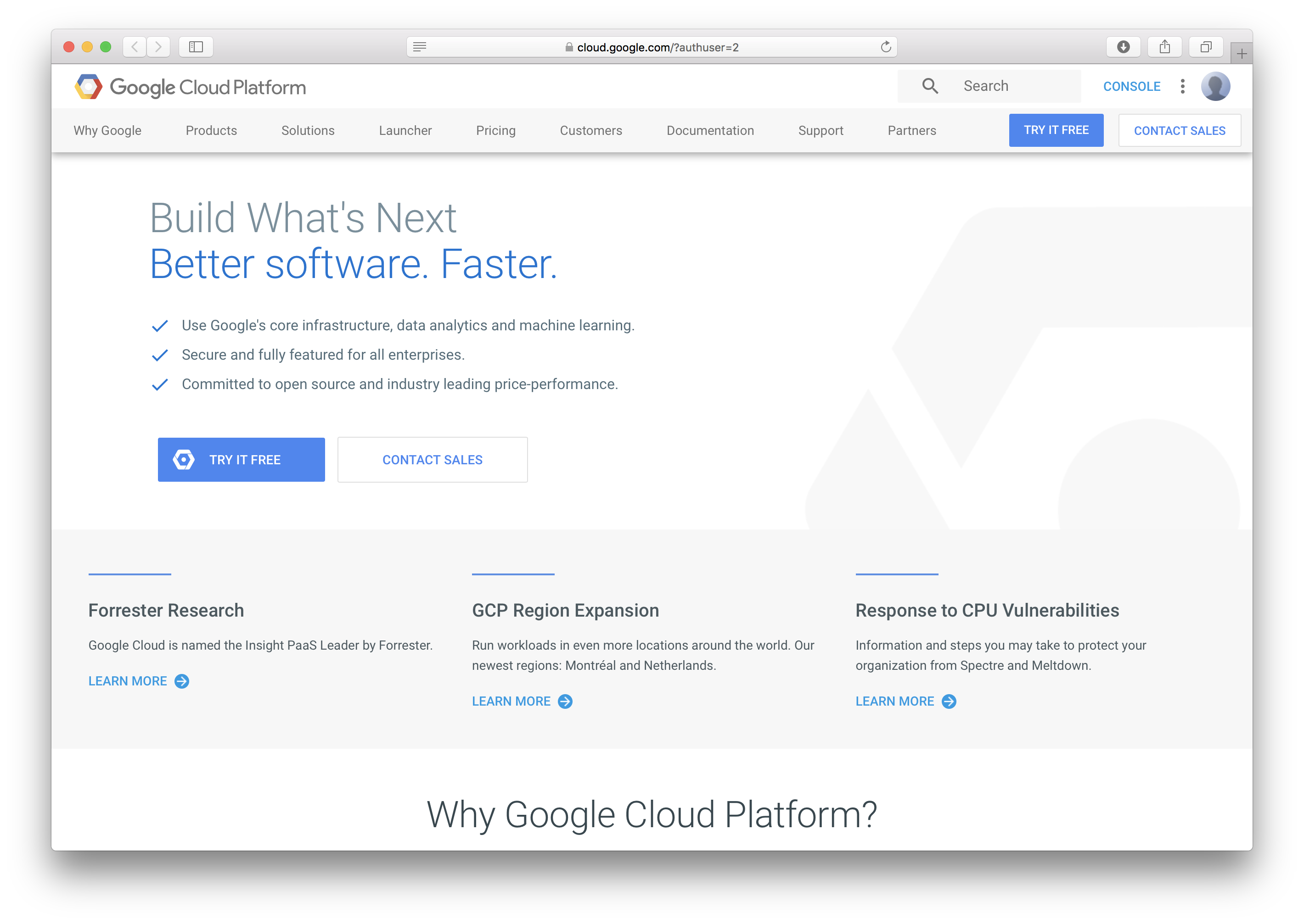 - If you click `Try it free` at and fill out requisite information, you will get $300 credit **which expires in ~~1 year~~ 3 months**. You do **not** need to use it for this course.