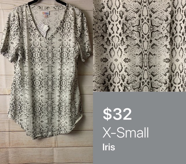 Head to our website for yours. This pretty LuLaRoe Iris top is NEW WITH TAGS! LuLaRoe Iris Top V Neck Tunic Shirt Blue White Vintage Flower floral Rose Small.