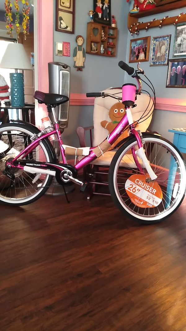 Susan G Komen Bike. Decals were stickers and peeled easily. Sturdy steel cruiser frame This ladies bike is perfect for the petite ladies to average height ladies.