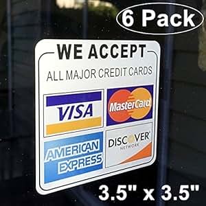 Amazon.com: Front Self Adhesive Vinyl Outdoor/Indoor (6 Pack) 3.5" X 3.5" WE ACCEPT ALL MAJOR ...