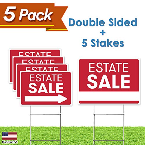 Deal Pixelverse Design Estate Sale Sign 5 Pack Bundle - (1) 18" x24" & (4) 12"x18" Real Estate ...