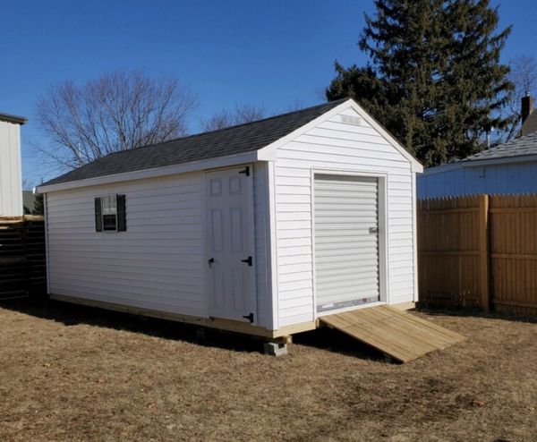 New 10' x 20' White Vinyl A Frame Shed with 5' Wide Rollup Garage Door for Sale in Rehoboth, MA ...