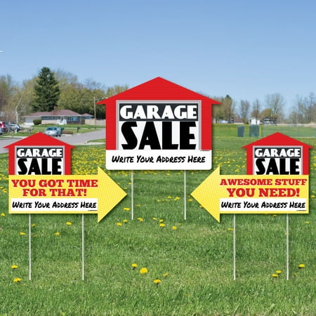 Garage Sale Signs - Yard Sign with Stakes - Double Sided Outdoor Lawn Sign - Set of 3 - Walmart.com