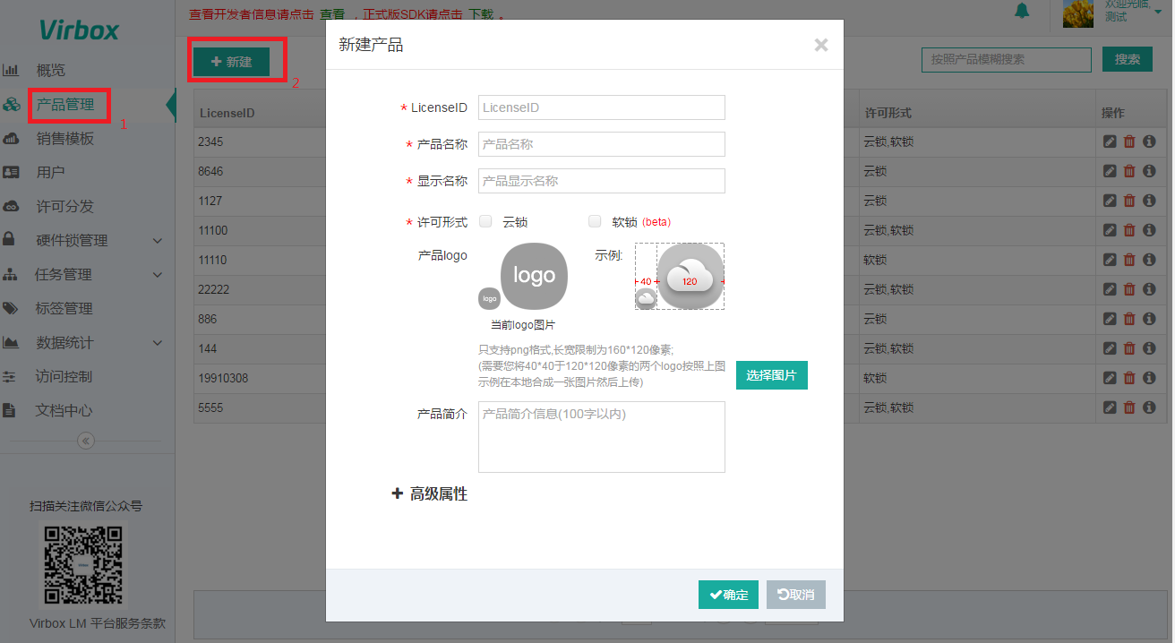 - 打开产品管理,点击"新建",填写产品信息;