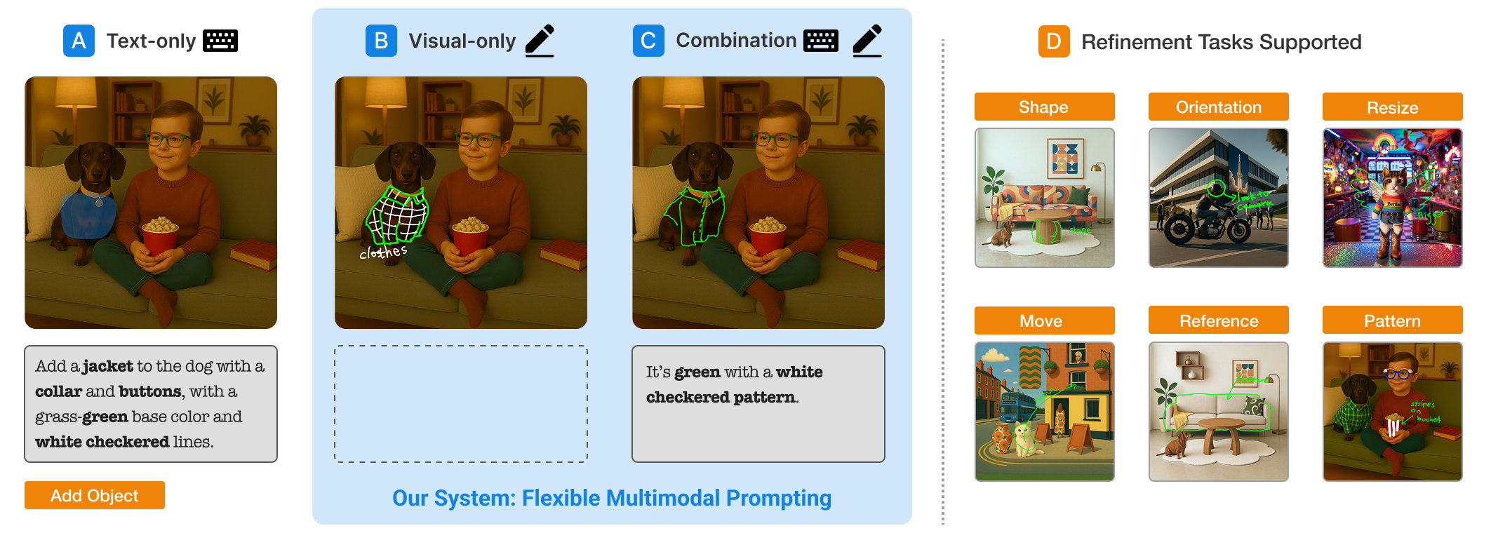 Abstract. Generative AI (GenAI) image tools are increasingly used in design practice, enabling rapid ideation but offering limited support for refinement tasks such as adjusting layout, scale, or visual attributes. While text prompts and inpainting allow localized edits, they often remain inefficient or ambiguous for precise, in-context, and iterative refinement -- motivating the exploration of alternative methods. This work examines how pen-based scribbles and annotations can enhance GenAI image refinement. A formative study with seven professional designers informed a prototype supporting three input modalities: text-only, visual-only, and combined prompting. A within-subjects study with 30 designers and design students compared these modalities across closed- and open-ended tasks, evaluating expressiveness, efficiency, workload, user experience, iteration, and multimodal strategies. Visual prompts improved clarity and speed for spatial edits while reducing workload, whereas text remained effective for semantic and global changes. The combined modality received the highest overall ratings, enabling complementary use, balancing spatial precision with semantic detail, and supporting smoother iteration. Task-specific preferences also emerged: adding new objects often required both modalities, while moving or modifying elements was typically handled through visual input. This work contributes (1) an empirical comparison of multimodal prompting for GenAI refinement, (2) a prototype integrating scribbles and annotations, and (3) insights into designers' multimodal strategies to inform future GenAI interfaces that better support refinement in GenAI-supported design workflows.