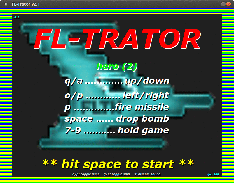 [1] Why FLTK? I know there are so many game writing libraries out there for C, C++, Python, Javascript and even HTML5 nowadays - I had a look at some of these - and came back to FLTK for it's simplicity and long term steady API. I like to start a project from scratch and with no dependencies.