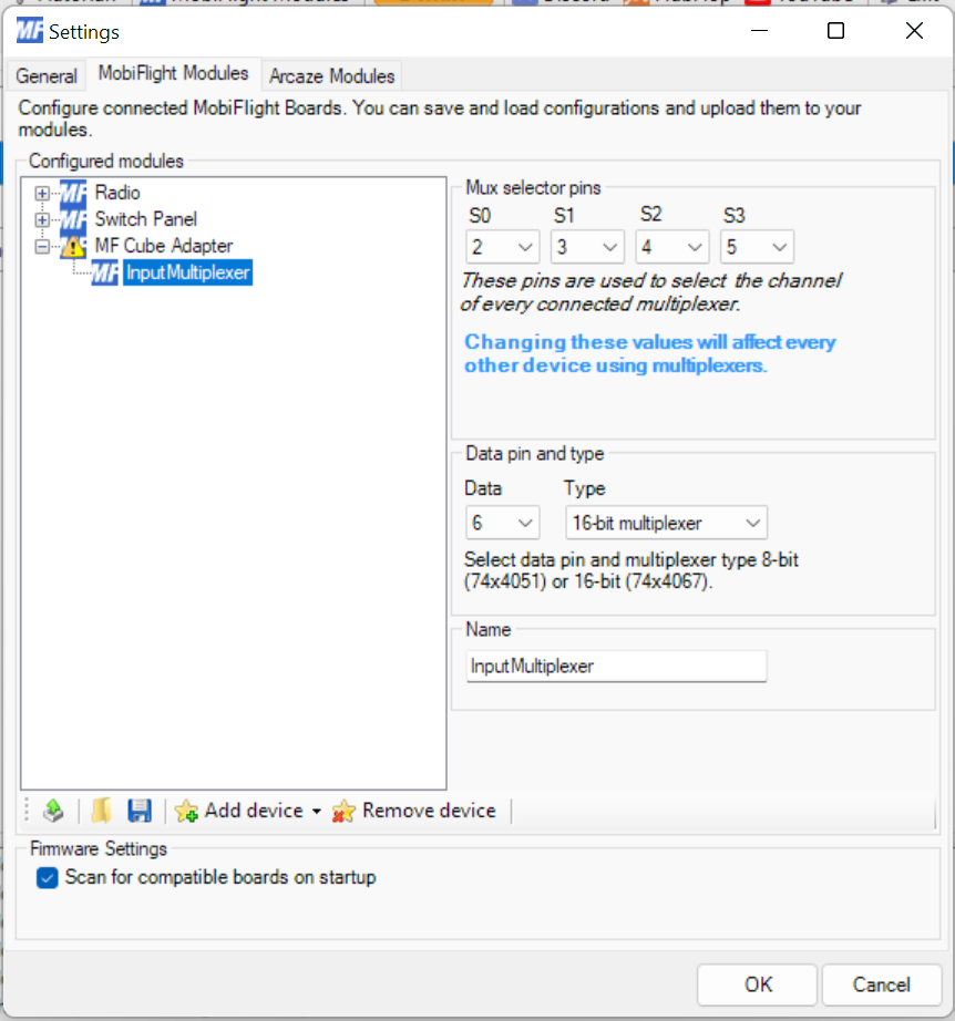 Multiplexer allow to increase the number of buttons. [Read more information about how to configure and use multiplexers with MobiFlight](https://github.com/MobiFlight/MobiFlight-Connector/wiki/Beginner's-guide-to-input-multiplexers).