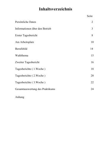 7+ inhaltsverzeichnis praktikumsbericht vorlage word | the ...