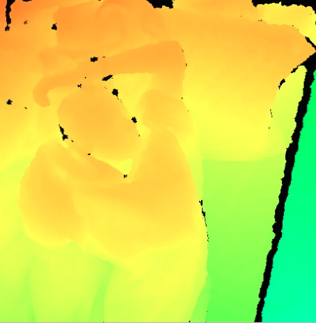 "The video from the kinect depth sensor was recorded at a frame rate of 1 frame per second throughout the entire night. An example frame from the camera is shown below, in which you can see the head with the arm placed above it. \n",